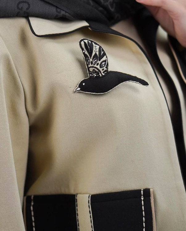 كت پرنده جنس كار کتان نخ هست وداخل كار تمام لمينت شده است تيكه دوزى هاى روى كار تمام بادست هست توى دوتا سايز ا و ٢ ميتونيد سفارش بديد قد كار ۶۵ هست